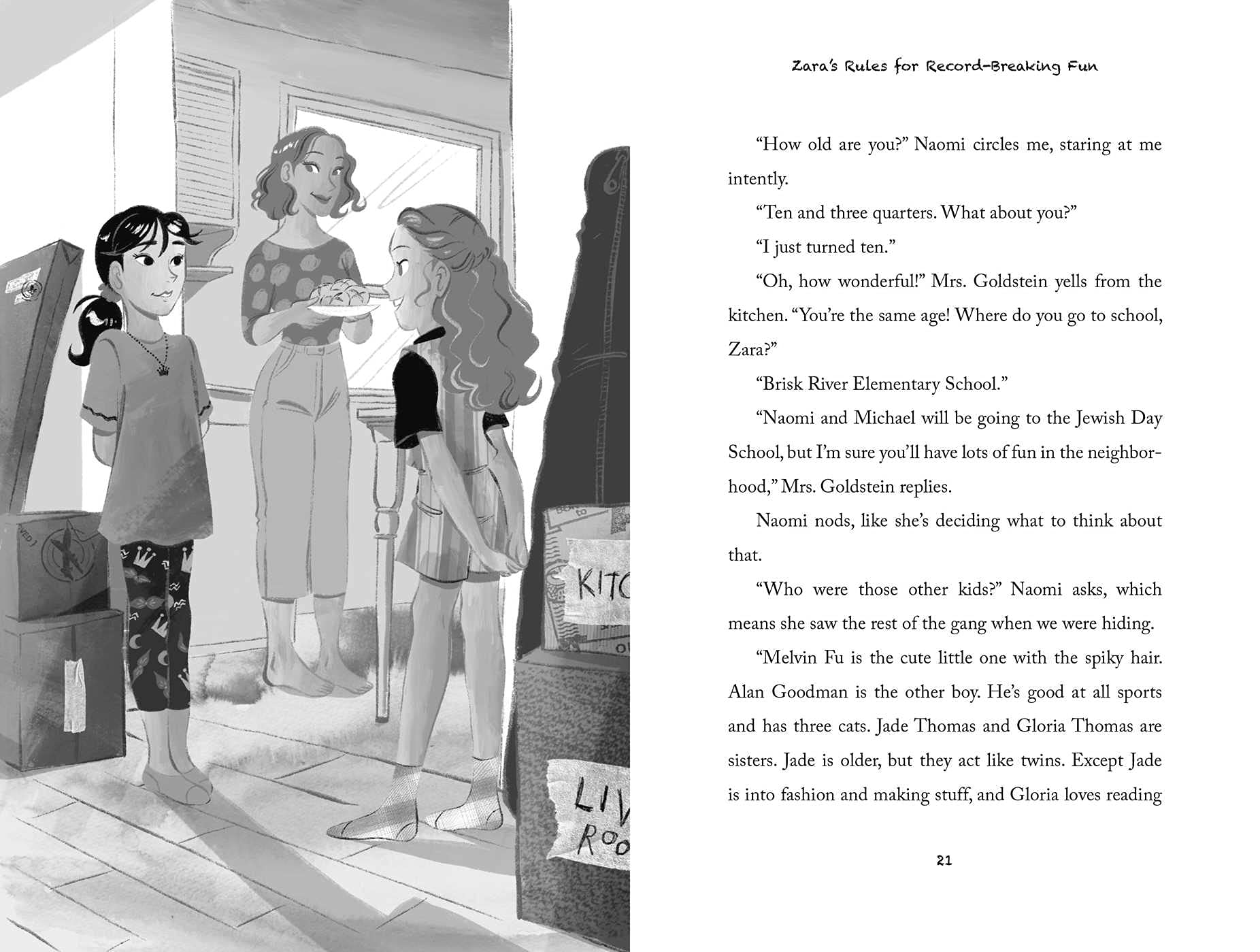 Pros: The author cites Beverly Cleary’s Ramona stories as an inspiration, and this book does have that feel to it, with a strong-willed protagonist and a close-knit family and neighborhood. Unlike Klickitat Street, there’s some diversity in the neighborhood, including Zara’s Pakistani American family. The plentiful illustrations will appeal to early chapter book readers.