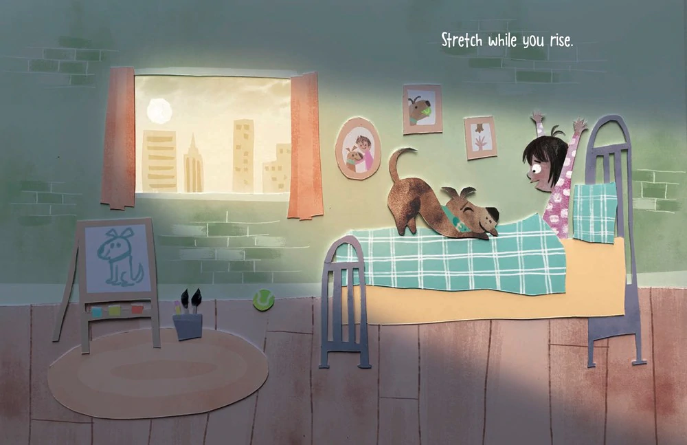 Summary: Can you be like a dog? Dogs are always in the present, not the past or the future. They stretch when they wake up, then greet the day and the people they love. Dogs feel their feelings, then let them go. They play every day, and sniff deeply wherever they go. And at the end of the day, dogs notice the night, feel their fatigue, and drop and dream. Includes lists of ways to use each of your senses on a mindfulness walk and a mindful breathing exercise. 40 pages; ages 4-8.