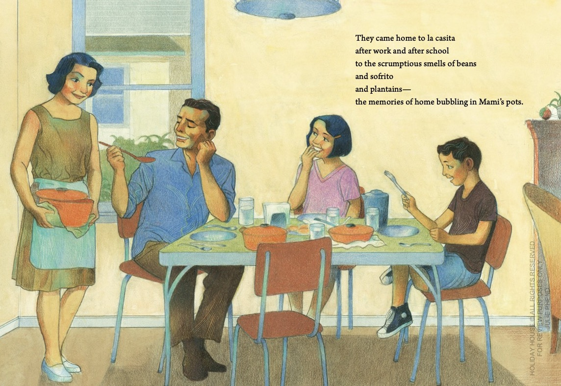 Summary: Esperanza, Manolo, Mami, and Papi look hard to find a new home when they arrive in the U.S. from Cuba. The house they find is small and needs some work, but everyone pitches in to fix it up. It’s not easy to find the time because all four members of the family are working hard to earn money and learn English. Eventually things get easier, and they’re able to share their home with two other families who have recently immigrated from Cuba and Mexico. Over the years, more families come and go, and Esperanza always creates special artwork for them to take for their new homes. 48 pages; ages 4-8.
