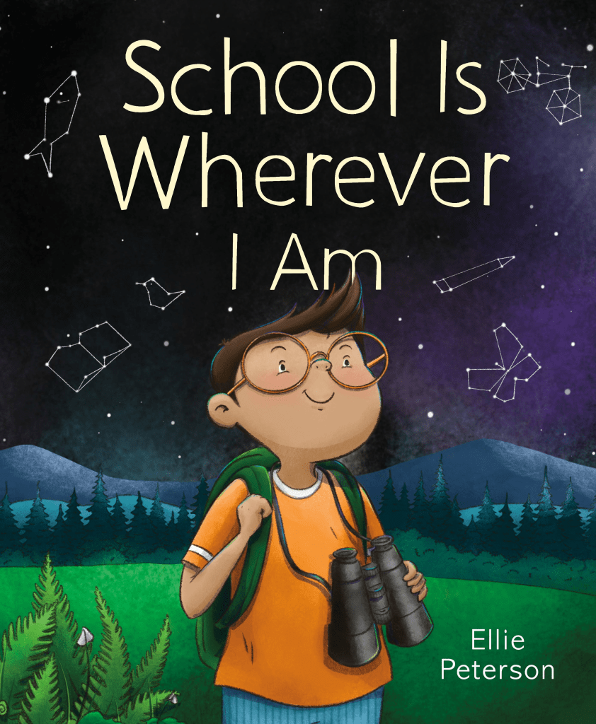 Summary: A boy introduces his school as a building where he goes to a classroom that has desks, a teacher, and his classmates. But then he wonders if school can be in other places too. He thinks about field trips to museums or a pumpkin patch, as well as experiences he’s had with his family like cooking and woodworking. Sometimes school is on a computer screen. School can even look like making a mistake, figuring out how to fix it, and apologizing. Inside or outside, the boy decides that school is wherever he is. 40 pages; ages 4-8.