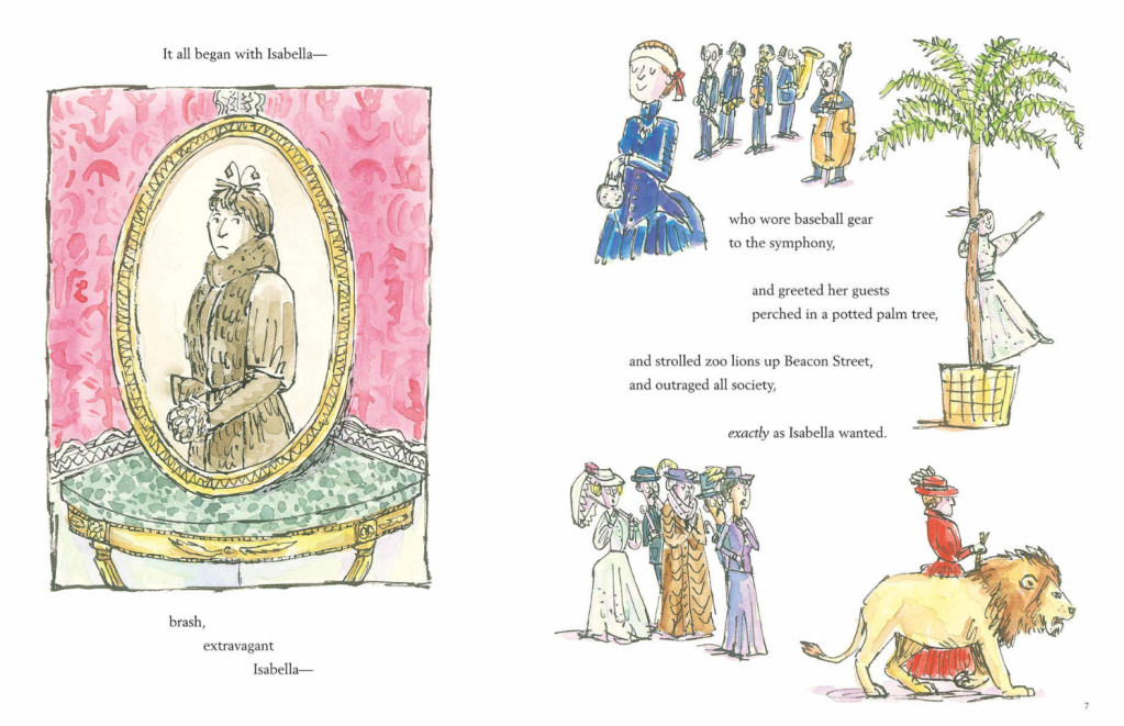 Pros: The lively free verse text and illustrations by Caldecott Medalist Matthew Cordell bring Isabella and her museum to life and pose intriguing questions about the art theft.