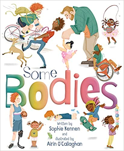 Summary: “Our bodies can get us from here to there/When we have big feelings, it’s our bodies that share. So bodies are useful, you’ll surely find/but they’re also unique–one of a kind!” The rhyming text and illustrations explore all sorts of different bodies. Size, color, wheelchairs, prosthetics, glasses, tattoos, top surgery, hair, and the amount covered by clothing are all touched upon in a light-hearted body-positive way. The author is an elementary school teacher who based the book on questions and comments she’s heard in the classroom, and she includes some sample scripts for answering children’s questions, encouraging adults to have those conversations in a positive manner. 32 pages; ages 3-8.