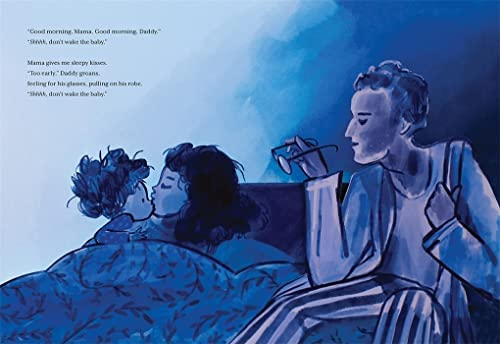 Summary: “I wake up very early,” says the child narrator on the first page. Mom gives a kiss and a warning not to wake up the baby. Dad sleepily puts on his glasses and heads downstairs for coffee, grumbling, “You wake up too early.” As dawn arrives, the two sit on the porch, looking at the moon and finding Venus. Birds start to sing, the baby starts to cry, and the light starts to change. As the sky turns from dark blue to bright yellow, the narrator says, “I wake up just in time.” 32 pages; ages 3-6.