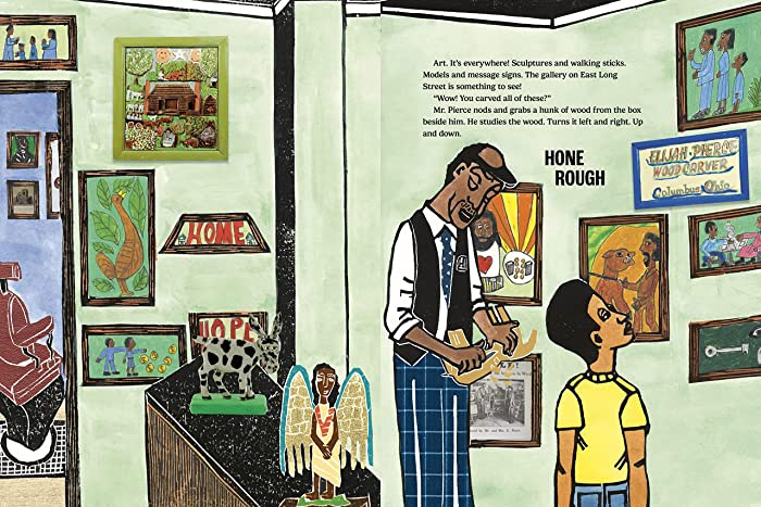 Summary: “I wish I were someplace that wasn’t so frozen and gray!” grumbles Alice on a cold winter’s day. An open book catches her eye, telling the story of a warm, colorful morning. “That sounds like our home,” say the birds in the story, and Alice finds herself in a steamy jungle. When it starts to rain, a pair of camels invite her into the desert. From there, the book takes her under the ocean and on a flight across the sky and up to the moon. The moon is lonely, though, so Alice wishes herself back home again, just in time for dinner with her family. 40 pages; ages 4-8.
