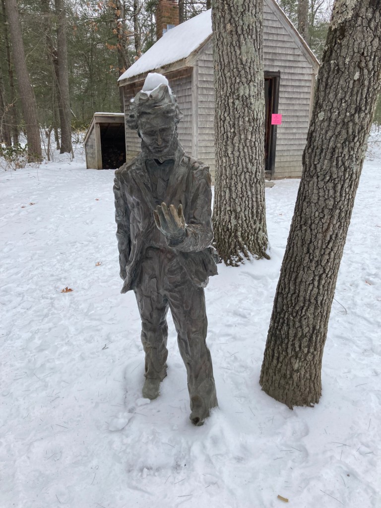 My last stop for the day was Walden Pond. I’ve been there many times, often in the summer when the parking lot gets filled by noon. But on this 20-degree day, the lot was almost completely empty. I parked by the visitor center and traipsed through icy snow to look at the replica of Thoreau’s house, which gives new meaning to “tiny house.” I didn’t venture across the street to the pond, as it was freezing outside and pretty icy under foot. Having visited in all seasons, I’d recommend spring or fall for a good hike around the pond when you won’t have to fight for a parking spot.