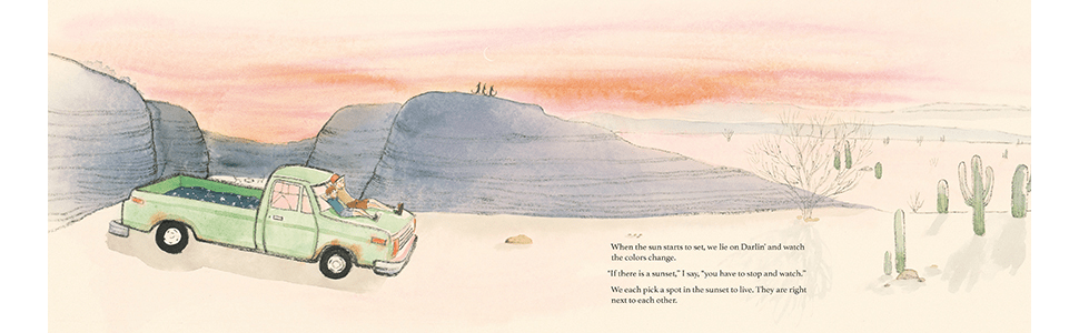 Pros: The watercolor paintings capture the beauty of the desert, and the simple story shows the love between parents and child and the safety that provides.