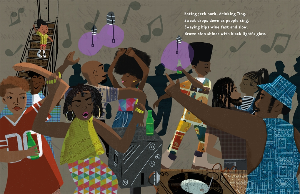 Pros: The bouncy rhyming text and brightly colored illustrations make this a celebration of both Jamaican dancehall music and Shane, a hardworking kid who does his own thing, helps his family, and has all the moves on the dance floor.
