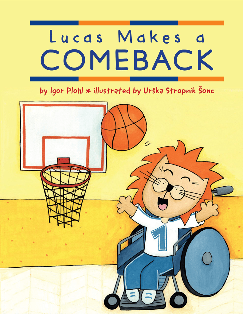 Igor Plohl drew on his own experiences to create Lucas, a lion who loses the use of his legs after falling off a ladder and injuring his spine. There’s a sequel: Lucas at the Paralympics. 32 pages; ages 4-8.