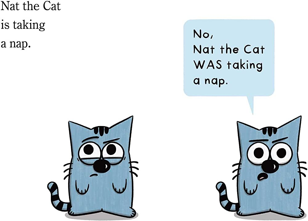 Summary: Nat the Cat is TRYING to take a nap, but the narrator of the story keeps waking him…by narrating the story. “Oh, brother,” says Nat the Cat, and the narrator introduces his brother, Pat the Rat (“That is NOT my brother,” says Nat). The series of misunderstandings ends, happily, with ZZZ’s for both cat and rat. 32 pages; ages 2-7.