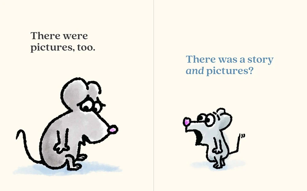 Summary: A little mouse is looking for a story. “Oh…I haven’t seen one,” says the big mouse, looking away. “Wait, isn’t this a book?” asks the little mouse. It is indeed, but there is no story. When pressed, the big mouse admits that he ate the story AND the pictures. It was a delicious story, and he offers to tell the little mouse a new one. It’s a tough process, but eventually the two mice work together to create a cozy story…with a surprise ending. 80 pages; ages 3-6.